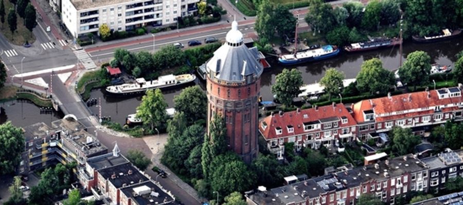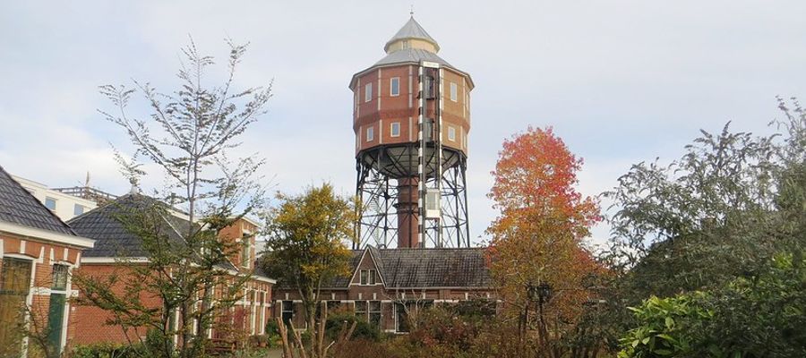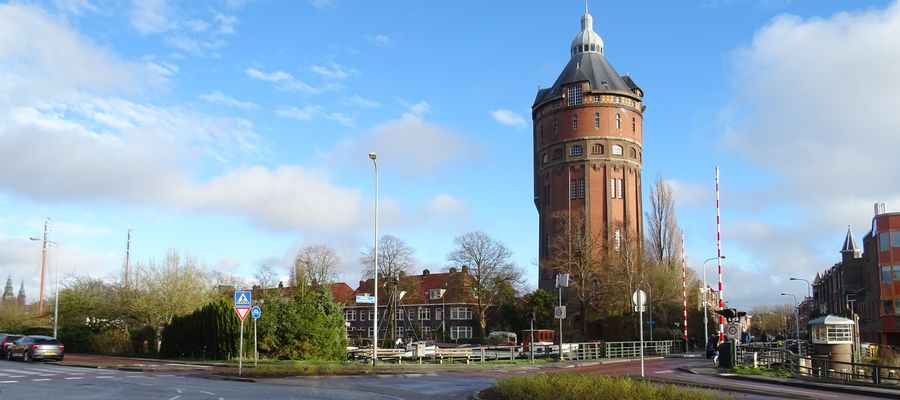 Deze watertoren, die wel een beetje lijkt op de Toren van Pisa, was de eerste watertoren in Groningen, had een hoogte van 35 meter en een waterreservoir van 675 kubieke meter. Waar in de stad kon je het bouwwerk, dat in 1970 werd gesloopt, precies vinden?