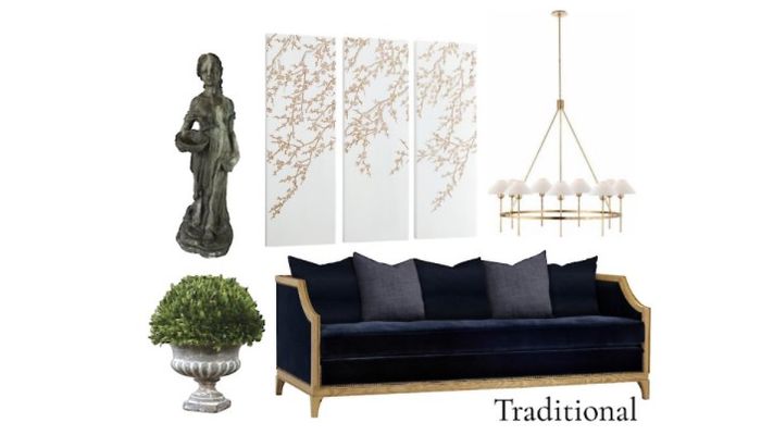 Classic and timeless. Traditional style is classic, not trendy. It is a style that evolves but keeps grounded roots. You can mix vintage and antique finds with new pieces seamlessly to create a look that never goes out of style. There is a reason that you can visit places like London, Paris, Amsterdam, New York City, Chicago and New Orleans and find similar finishes such as white marble countertops, black and white tiles, beautiful moldings, dark wood or black cabinetry and chrome or brass hardware – these finishes are timeless, they endure. They don’t go out of style; they are not a fad. They are as beautiful now as they were 50 or 100 years ago, they are classic and have withstood the test of time. Traditional Style... so familiar... Thespruce.com notes that traditional style features furniture and accessories that are placed in pairs and centered in the room. There is nothing out of place or of a different style. Everything has the look that it goes together.Traditional rooms are not ostentatious but rather somewhat casual. Furniture pieces are often reproductions. Modern, eclectic pieces have no room in a traditional space. HGTV.com notes that traditional style is timelessly on-trend, it lends a sense of stability and collected-over-time charm to any indoor or outdoor space. While traditional style can sometimes seem formal — to really nail the look, choose elements that are comfortable, colorful and curated.Traditional style homes feel comfortable for any age group. It's a familiar look that you'd see in magazines or furniture showrooms. A traditional room is not a place to showcase a piece of modern art or stainless-steel furniture.Traditional StyleCharacteristics of Traditional design from Thespruce.com:Elements of a Traditional RoomUpholstered furniture in a traditional room exhibits classic lines and understated details. It is functional, unfussy, and restful looking. Edges are soft, smooth, and blend in as a whole.In general, a traditional room will use a mix of vertical lines with more restful horizontal lines. Gentle curves are seen in furniture, pillows, and accessories.Fabrics in a traditional room are generally neither too shiny nor too textured. Florals, plain colors, muted plaids, understated stripes, soft geometrics, tone-on-tone, and small all-over patterns are common.Color in a traditional room is often in a mid-range of tones, though very dark and very light colors can also be used. Pretty multicolor florals are often the basis of a traditional color scheme that uses the lightest color on the walls and deeper hues for upholstery and flooring. Avoid neon brights and jarring combinations.The overall ambiance of traditional decor is homey, understated, and non-jarring.As in formal settings, furniture in a traditional room is often arranged on a straight axis within the room. The sofa will directly face or sit perpendicular to the fireplace and a bed will back up to the center of the longest bedroom wall.Wood furniture will usually have a mix of straight and curved lines. There may be light carving details as well. While wood pieces will often be finished with darker stains, a traditional room might also use lighter woods as long as the lines of each piece are classic.Interiors in a traditional home will often feature trim and molding that is painted glossy white. Crown molding is common and adds to the formal look. Walls might have a chair rail and simple molding details, with wall surfaces done in a flat painted finish or wallpaper. Ceilings are often white and may have simple beams.The dining room in a traditional home is generally a separate room, often with built-in cabinets for China storage. A large area rug sits on top of a hardwood floor. The table is rectangular with a set of matched chairs placed evenly around the perimeter. A coordinating sideboard, buffet, or China cabinet is centered on one wall.Dressmaker details are not particularly important in a traditional room. Trims, tassels, and fringes are used sparingly if at all, in favor of a simpler, calmer look.Window coverings in traditional rooms show a classic style. Look for shutters, traverse draperies, and under treatments of pinch pleated sheers. Cornices and valances may also be featured.Accessories include pairs of lamps, urns, plants, mirrors, framed prints, China, vases, and collections of books. Pairs of objects are usually arranged in balanced symmetry.Light fixtures exhibit classic styling. Lamps with silk shades, wall sconces, and floor lamps might all be used. Shades should be fairly plain and in ivory or white.Traditional dining rooms can show off a variety of China, glassware, and silver. Plates might be a classic gold-rimmed style or a simple floral design. Use either beautiful tablecloths or pretty fabric placemats and napkins.“Architecture should speak of its time and place but yearn for timelessness.”Frank GehryThank you for taking our design quiz! We hope you enjoyed it! So much more than an online furniture and decor store, Noeka Home is a lifestyle destination. Our curated collections reflect a blend of global influence, timeless design, and modern sophistication — carefully chosen to help you create a home that feels both elevated and personal. Through our virtual and full-service e-design offerings, we bring professional interior design directly to you, wherever you are, helping you craft spaces that tell your story and reflect your individual style.More than a brand, Noeka Home is where international inspiration meets accessible luxury — designed to make every detail of your home feel intentional and inspiring.SEE OUR PICKS BELOW FOR YOUR DESIGN STYLE!Shop online at noekahome.comOnline Boutique | Interior Design Services | Home Renovations